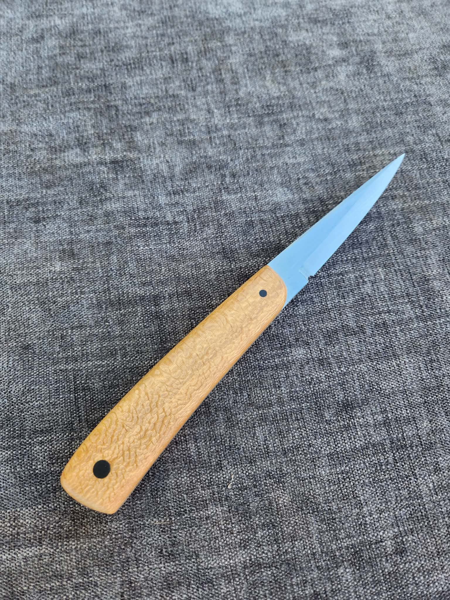 O1 toolsteel is a tried and tested alloy, being in use from around the 1930s. From machine plainer blades, carving tool, bushcraft and outdoors knives and much more. Each knife is carefully heat treated to a hardness of 60-61 HRC, which I find to be the "sweet spot" to get the most out of this awesome old-school steel grade, providing the perfect balance between hardness/edge retention and durability.